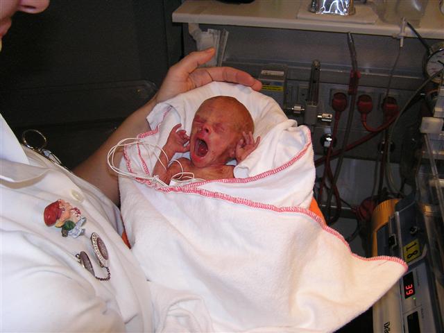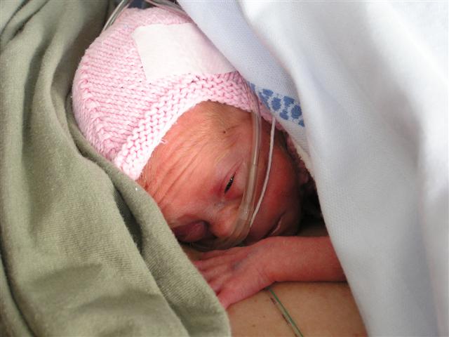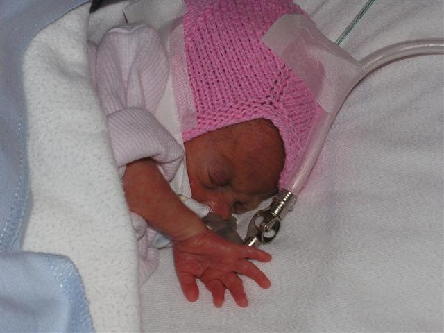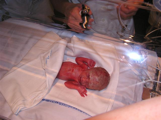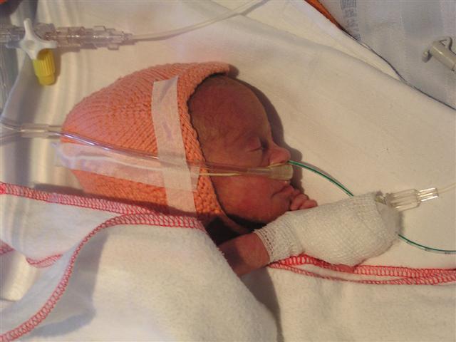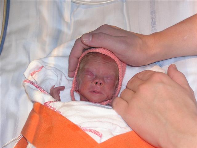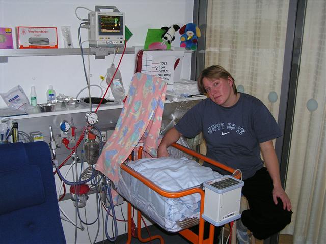 Her er vores datter Ida kommet i kuvøse. Hun ser fin ud, eller velskabt som man siger i lægekredsen.