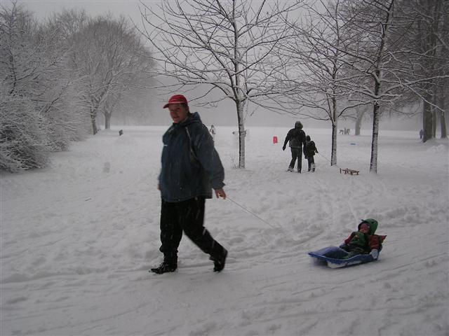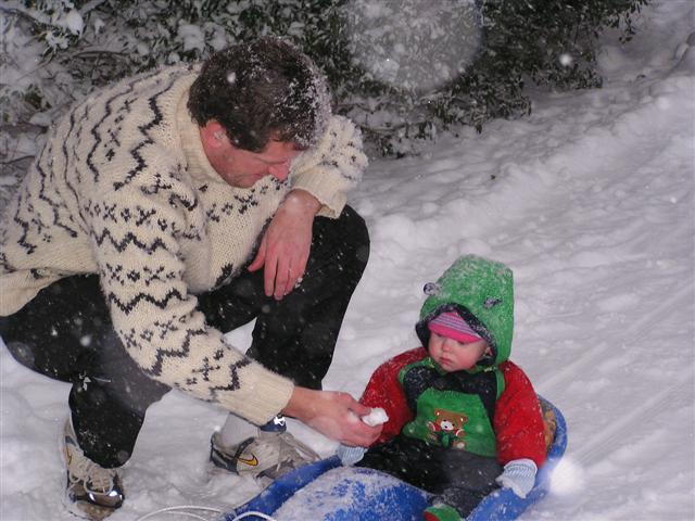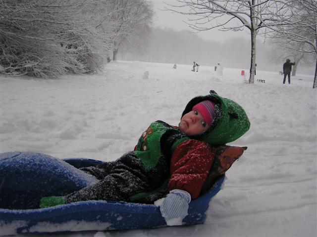 Ida på sin første kælketur, hun prøvede dog ingen bakker